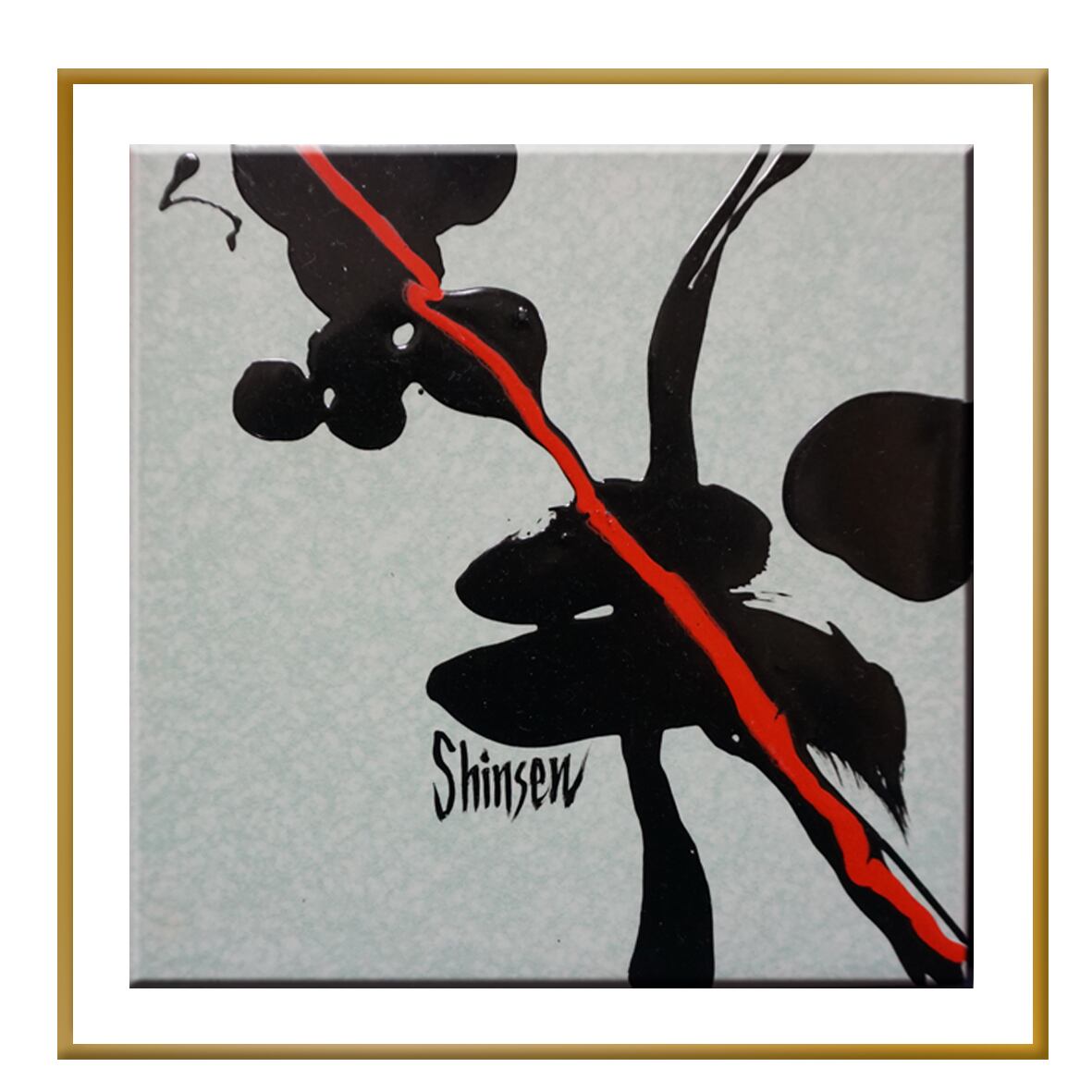 書家「野原 神川」 タイル書  タイトル【赤い糸】